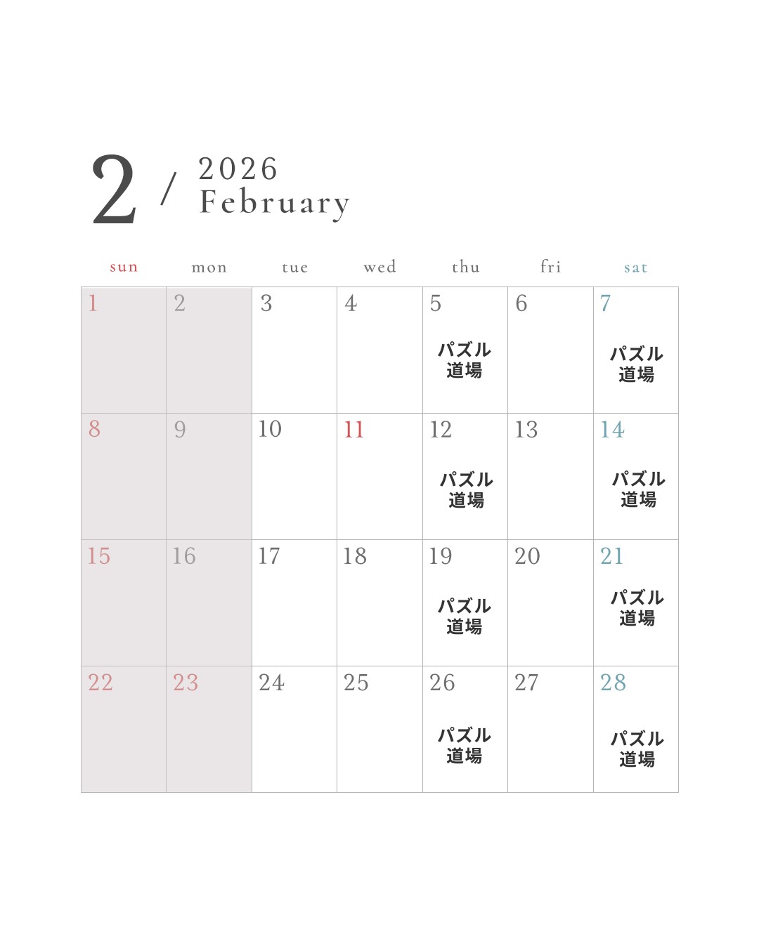 【2026】2月の営業カレンダー
